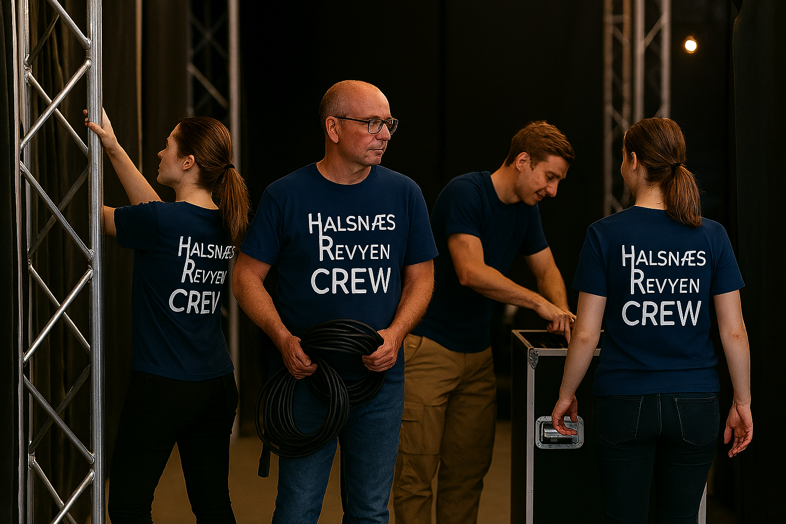 RevyCREW er vores fantastiske frivilligteam, der hjælper med alt det, der får revyen til at leve – events, forestillinger, backstage‑opgaver, publikumshåndtering, teknik, indretning og meget mere.